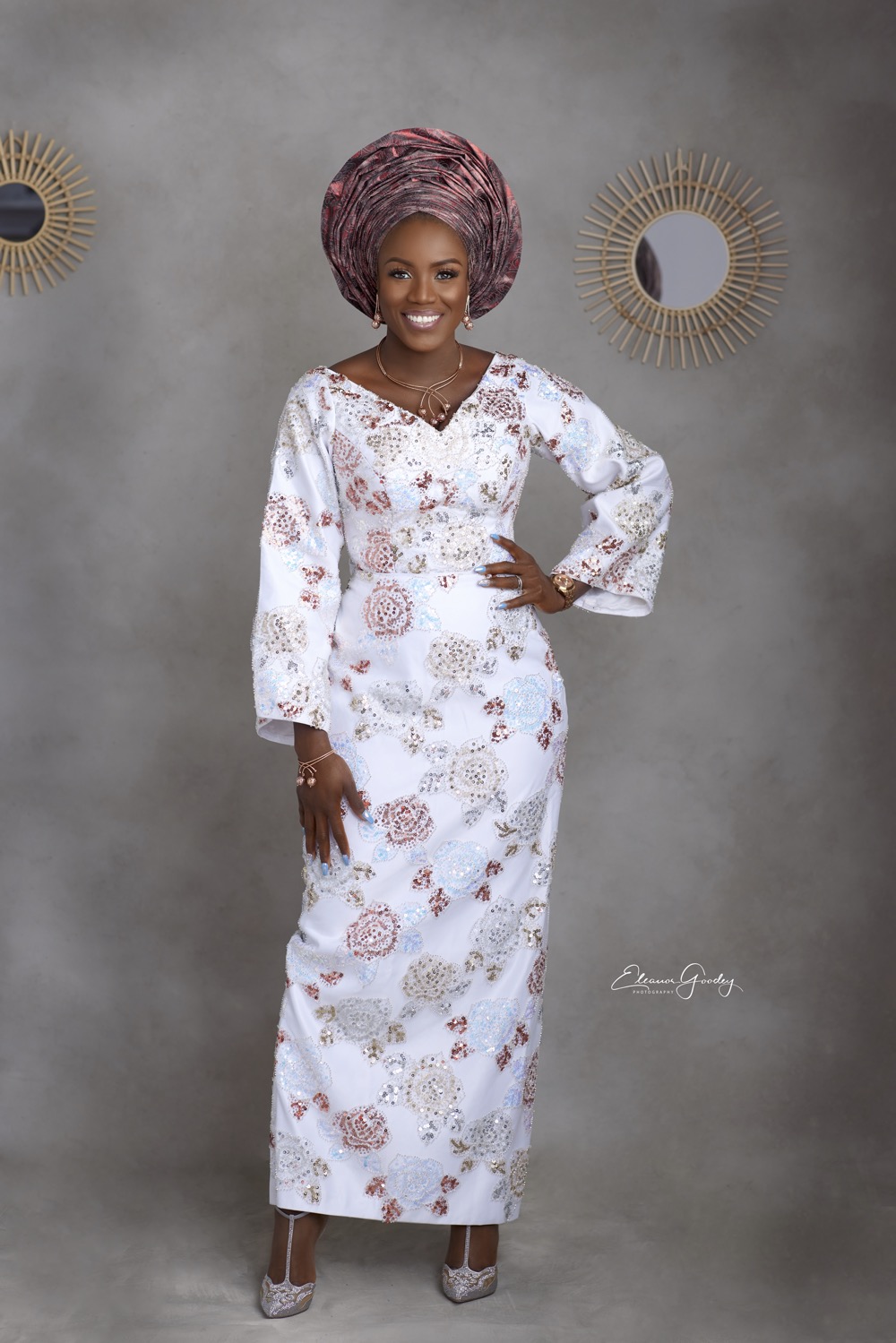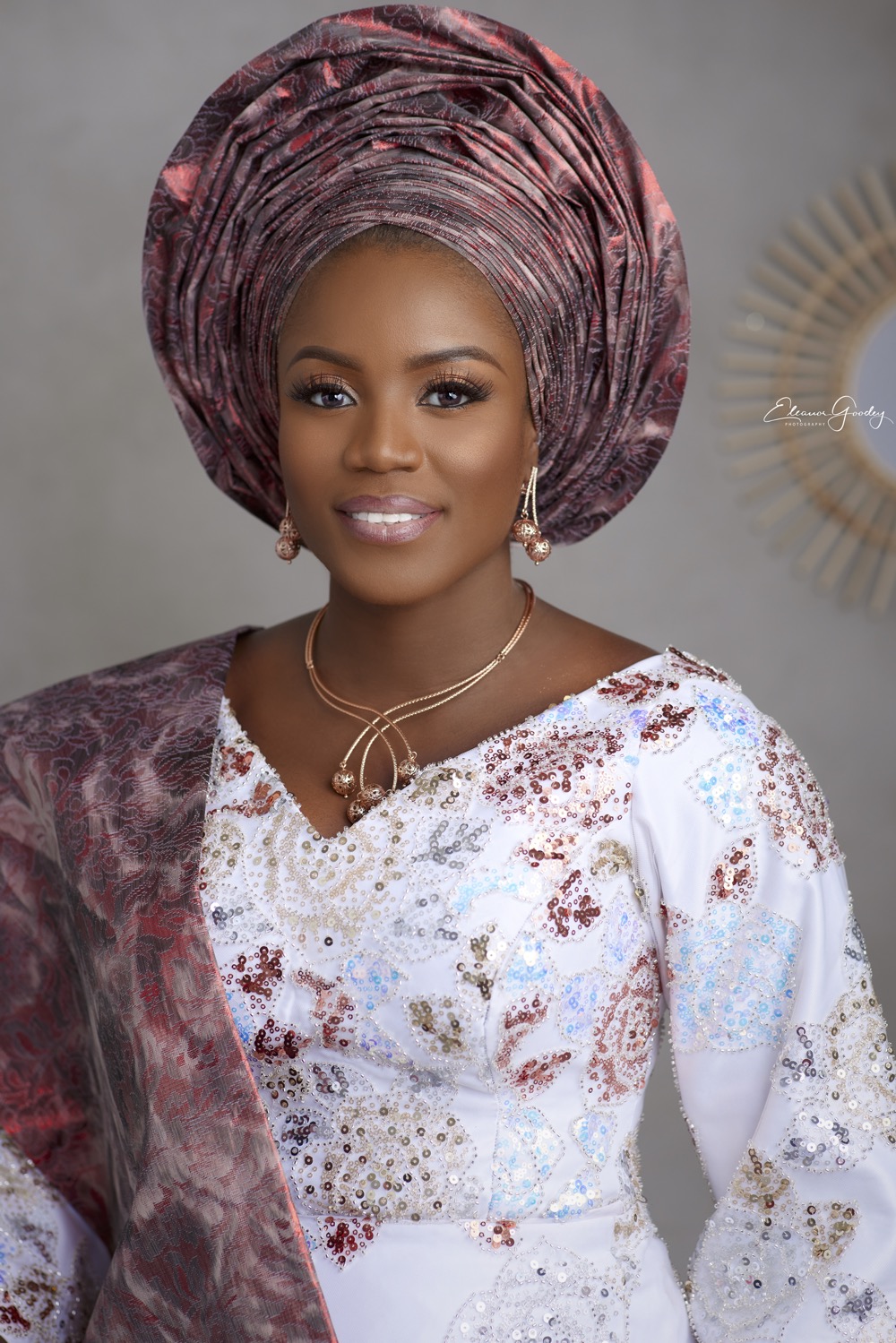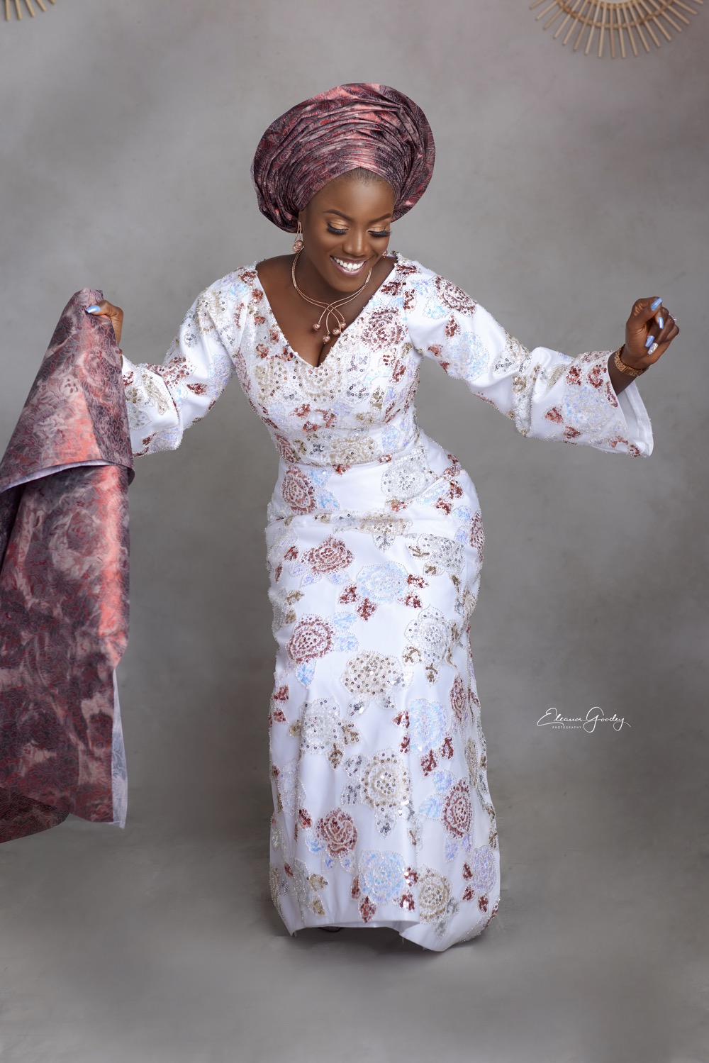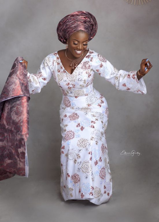 I spent a few hours re- assuring her that all hope wasnt lost. I quickly whipped on my Fairy Godmother cape and got on the phone with several fabric merchants. @thefabricroomng came to the rescue!! We viewed several fabric, but i literally heard this one scream ‘PICK ME’. I fell in love with it immediately. I knew for sure it would match the rose headtie which i selected for the client from Switzerland and the rose gold jewelry i saw from the corner of my eye during my consultation at the client’s home the day before. It was just the right piece to accentuate the outfit. I picked a simple style, komole. (Didnt want it to look like we are trying too hard. The fabric was already doing the talking! ????). I wanted her to look like a classic version of a yoruba queen but in the 21stcentury. @sheyeoladejo executed my thoughts to perfection. From my clients dance steps you know we nailed her look.